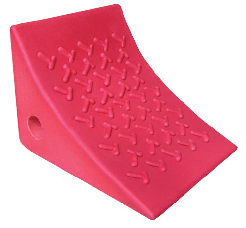 Bright orange for greater visibility. Incoming and outgoing drivers can easily see chock for added safety. Safety tread on chock face provides better grip and reduces slippage. Chock measures 7" width by 6" height by 8" depth.